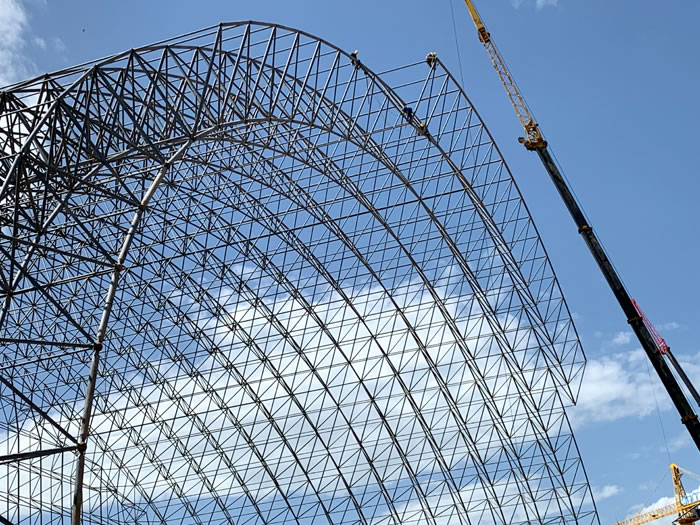 (2)网架加工前应对现场尺寸进行复测,确认无误后方可进行加工、安装;网架制作、运输、安装应遵守《空间网格结构技术规程》JGJ7-2010、《钢网架那曲螺栓球节点》JG/T 10-2009、《钢网架那曲螺栓球节点用高强度螺栓》 GB/T 16939-2016、《那曲钢结构那曲工程那曲施工规范》 GB50755-2012、《那曲钢结构那曲工程那曲施工质量验收标准》 GB50205-2020。